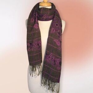 Purple Floral Fringed Pashmina Scarf Wrap