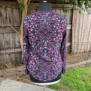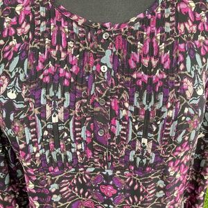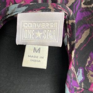 Converse - Purple floral blouse with beautiful mandala like pattern and slightly sheer fabric. Featuring pleated button-up front (not sheer) and long sleeves with button cuffs in size Medium and excellent condition #floral #blouse