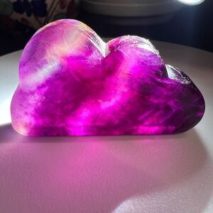 A purple fluorite cloud carving, with its swirling hues of violet, symbolizes calm and clarity. Metaphysically, it enhances intuition, aids in decision-making, and protects against negative energy. This carving promotes mental clarity, spiritual growth, and emotional balance.