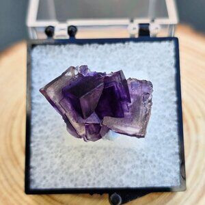 Purple Fluorite Mineral Thumbnail | 16g Raw Cube Crystal Display Box Collectible