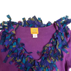 Purple Frayed Fringe Soft Rayon Sweater Size Small