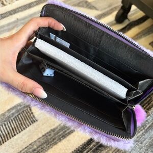 Brand New Adorable purple furry clutch with rabbit design. Features a cute pom-pom zipper.