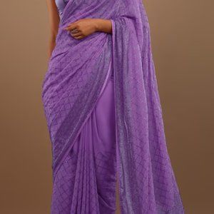 Purple Georgette Saree With Swarovski Stonework On The Borders - Kalki Fashion