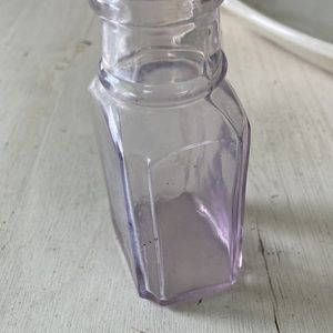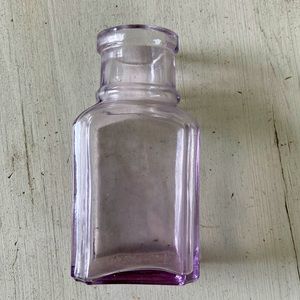 Antique purple glass used for ink I believe. I use it as a flower vase. Dainty and pretty, great for a vanity or any shabby chic decor. 1.75” wide and 2.75” tall. I used to keep dried lavender on a window sill in it.