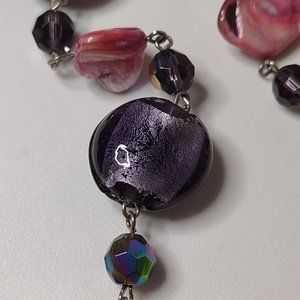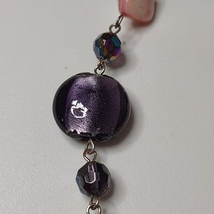 Purple Glass And Pink Shell Bead Necklace 31 Inches Long