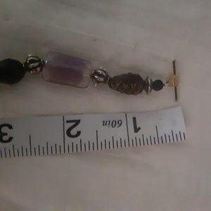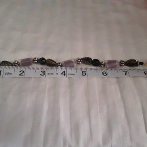 Purple Glass Black Silver Tone Beads Toggle Bracelet