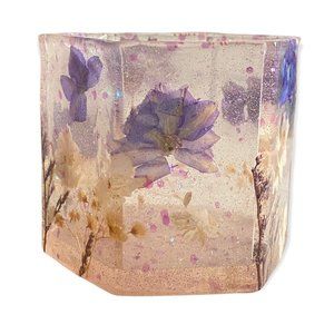Purple & Gold Floral Resin Handmade Planter, Desktop Pen Holder, Trinket Holder