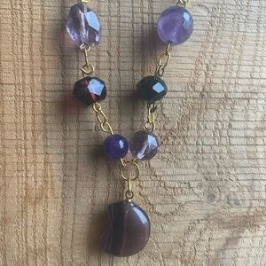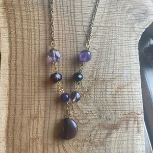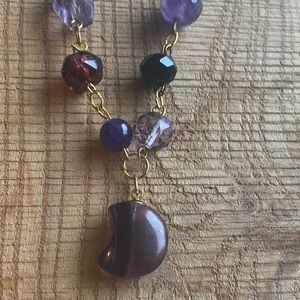 Purple Gold Gemstone Necklace with Fluorite Moon, Amethyst, Garnet and Onyx