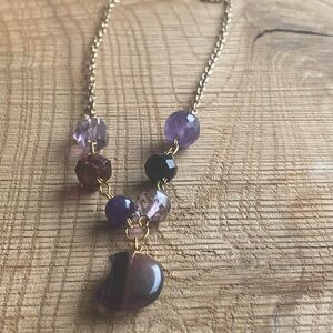 This stunning necklace features rich purple beads paired with elegant gold accents. Perfect for adding a touch of sophistication to any outfit.