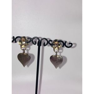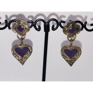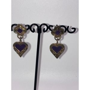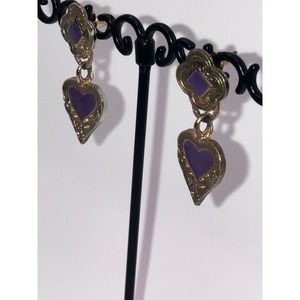 Purple & Gold-Tone Art Nouveau Heart Dangle 1.5 Inch Earrings Vintage!