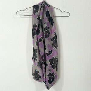Purple Gray Black Floral Infinity Scarf Sheer Chiffon Style Handmade 58” Loop