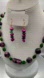 Purple, Green & Black Rose Beaded Necklace & Handmade earrings with Pearls Set