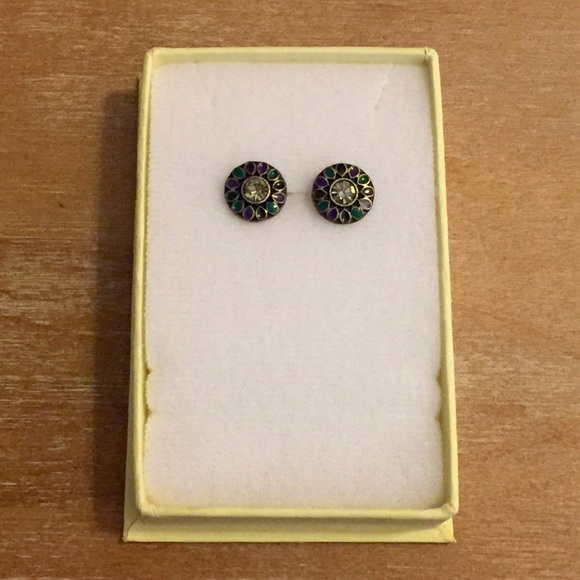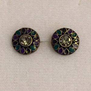 Purple, green, bronze stud earrings. New condition. Smoke-free home.