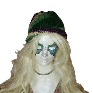 Purple Green Yellow Tie Dye Knit Beanie Hat