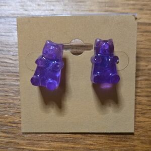 Add a playful touch to your look with these charming purple gummy bear earrings. Perfect for any occasion.