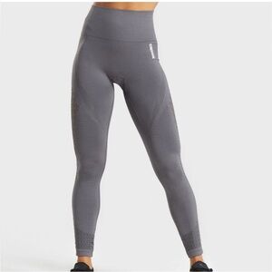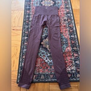 Gymshark leggings purple / fitted seamless has some sheerness holes on pants - unique look
