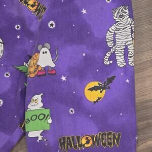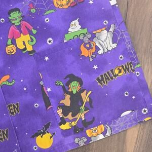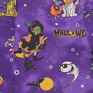 Purple Halloween Monsters Vintage Scrub Top Nurse Vet Tech Long Sleeve Button M