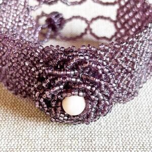 Purple Handbeaded Beadwork Rosette Bracelet