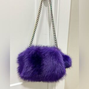 Purple Handmade Dyed Silver Fox Fur Camera Bag/Crossbody & 3 Strap Styles