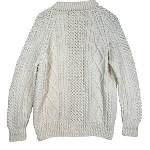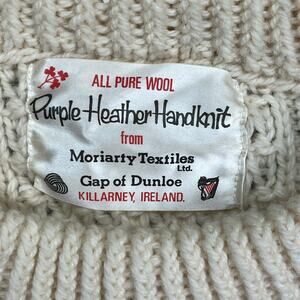 Cozy, classic, and beautifully crafted—this authentic Irish fisherman sweater is handknit from 100% pure wool by Purple Heather Handknit, Moriarty Textiles, Gap of Dunloe. Features intricate cable knit, bobble stitching, and a thick ribbed hem and cuffs. A warm, timeless piece ideal for cold weather styling.