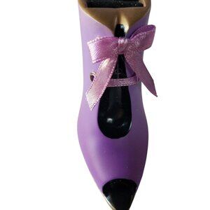 Purple High Heel Ring Holder With Bow & Gold Accents