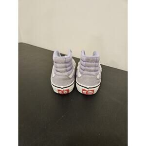 This product is a pair of VANS high top sneakers in a size 11, featuring a stylish lavender color. Designed for unisex kids, these sneakers are perfect for casual wear with a flat heel height for comfort. The brand, VANS, known for their quality and trendy footwear, ensures that these shoes will be both fashionable and durable for any young wearer.