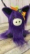 Crafted with soft, long faux fur, this quirky cow features a vibrant purple coat, one eerie yellow eye, and black genuine leather inner ears for a touch of realism. Her black polymer clay hooves and two-tone black-and-white horns add charming detail.