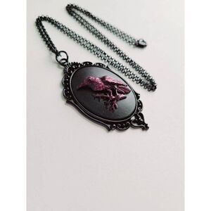 Purple Iridescent Raven Crow Gothic Rockabilly Cameo Black Necklace Pendant Goth