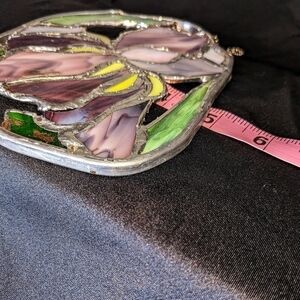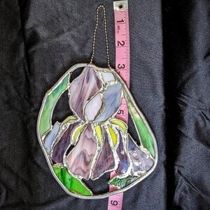 Style: Unique, One of a Kind, Floral, Window Decor, Iris, Garden, Kitchen, Bathroom, Bedroom, Boho, Cottage Core, Granny Core, Fairy Core, Soldered, Handmade, Gift, Mom, Mother's Day, Dad, Unisex, Tiffany Style