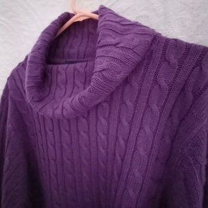 Purple Karen Scott II Cable Knit Cowl Neck Tunic Sweater.