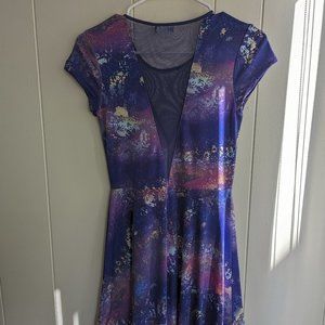 Purple Kimchi Blue mesh paneled, cap sleeved skater dress - Worn once (S/M)