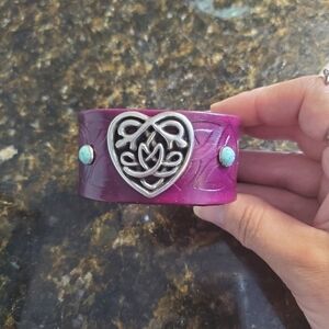 Purple Leather Cuff Bracelet With Cletic Metal Cabochon