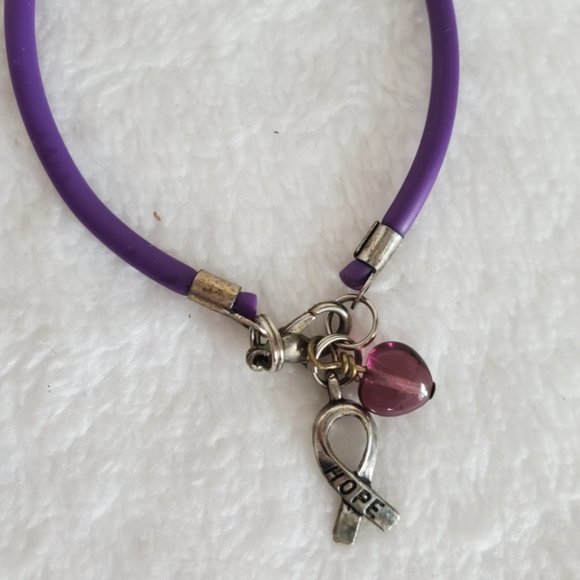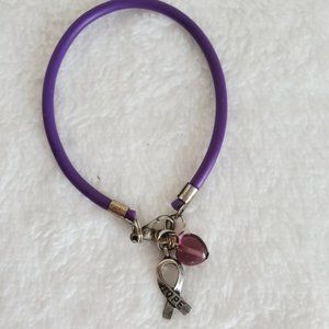 Purple leather bracelet with a HOPE charm and a Crystal heart charm.