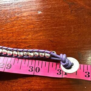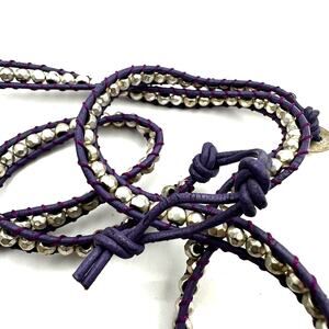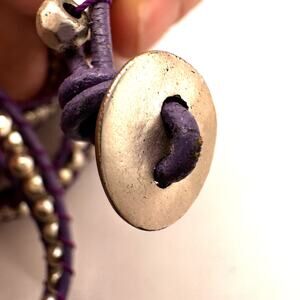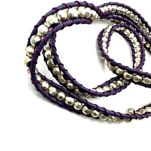 Purple Leather Silver Bead Wrap Bracelet Boho Coastal Cowgirl Western Casual