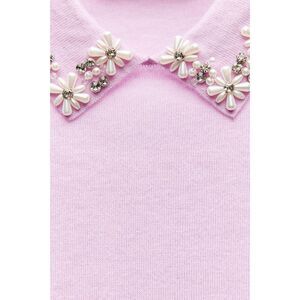 Purple Lilac Zara Pointed Jewel Rhinestone Bead Embellished Collar Knit Sweater