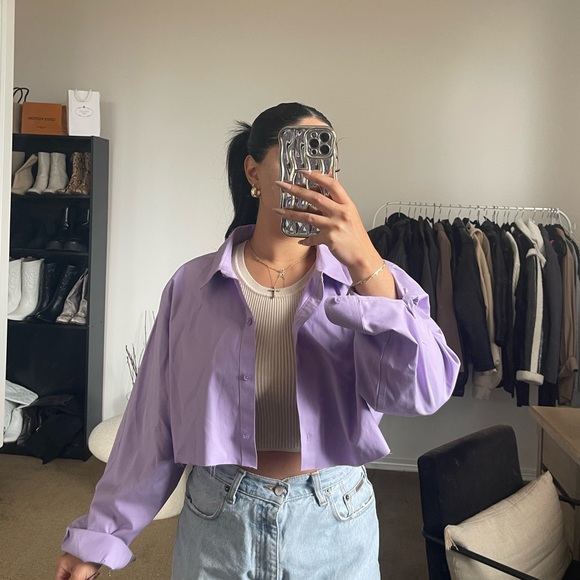 Purple Long sleeve Crop Top