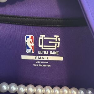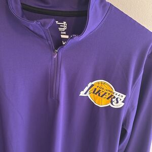 Stylish purple quarter-zip pullover featuring the Los Angeles Lakers logo. Perfect for fans.