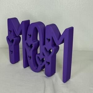 Purple MOM Tabletop Sign Heart Cutouts Mother's Day Gift Decor Shelf Plaque