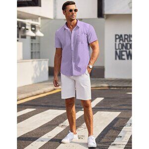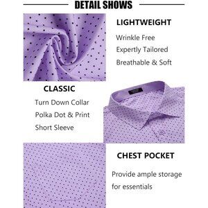 Purple Men Short Sleeve Button Down Wrinkle Free Polka Dot Print Shirt
