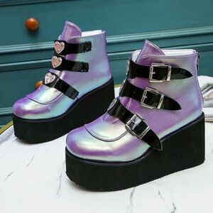 Purple Metallic Platform Ankle Boots - Size 6. Brand new never worn no box.