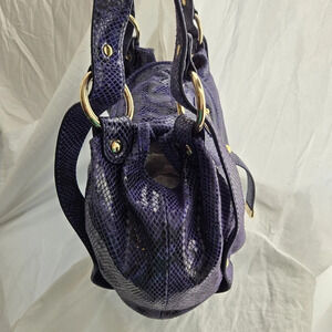 Gorgeous Michael Kors Purple Satchel with sparkling snakeskin texture, gold hardware, double straps and magnetic closure. A few pockets inside, including a zippered pocket. Super beautiful bag, extra sturdy (imo). B0907.