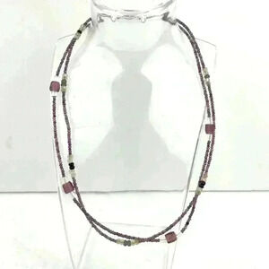 Purple Mini Seed Bead Necklace Layered Iridescent Glass Frosty Jewelry 17"