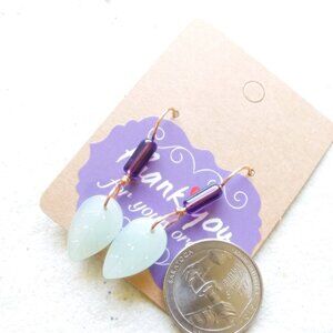 Purple + Mint Green Summer Leaf Earrings! Handmade Copper Earwires - Lightweight