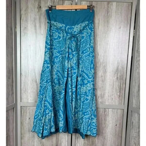 Purple Moon Pants Womens Small Paisley Print Blue Wide Leg High Rise Tulip Hem