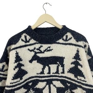 Purple Mountain Large Sweater Wool Cotton Hand Knit Ecuador Unisex Holiday