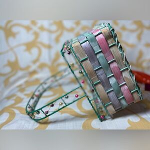Purple Multicolor Square Woven Basket Beaded Border Details BONUS Purple Decor Shred Easter