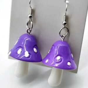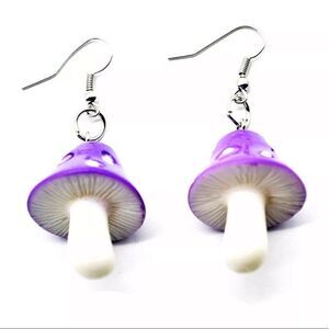 Super cute purple mushroom earrings. 3 dimensional drop earrings. Whimsical hand painted mushrooms. Brand new, never worn. Available several other colors in separate listings. Photos are a part of the description. Color may vary with lighting or device.