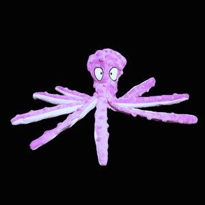 Purple Octopus Dog Toy. Medium in Size. Approximately 12 inches Head to End of Tentacle. Squeaker in Head. Crinkle Tentacle. No Stuffing. New in Bag.