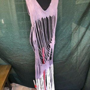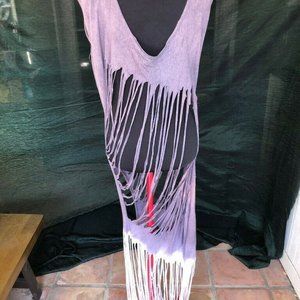 Purple Ombre Distressed Off-Shoulder Shirt Dress Rips Unique Sz O/S. Hippie, Boho, Burning Man, Coachella, Festival, Costume.