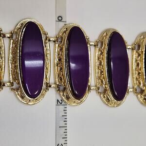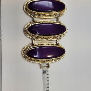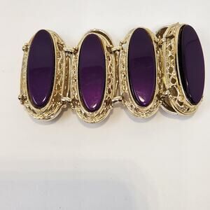 Purple Oval Gold Tone Panel Oversized Cuff Link Bracelet Dramatic Statement